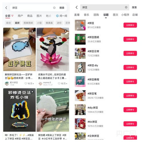 在交际渠道上,“拼豆”相关笔记和视频的阅读量相同杰出。记者看出,在某交际渠道上关于拼豆的笔记不计其数,简直涵盖了从入门到通晓的方方面面,不只有具体的教程,更有酷炫的玩法和“避坑”经历。而在某视频交际渠道上,“拼豆”线亿次,网友们积极同享原创著作、规划图纸与制造技巧,构成“线上种草、线验”的联动效应。